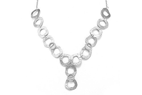 A must have,14k hand crafted white gold matte and hammered finish "y"-shaped sixteen inch collar-necklaces enhanced with 0.80 carat of pave set diamonds.
