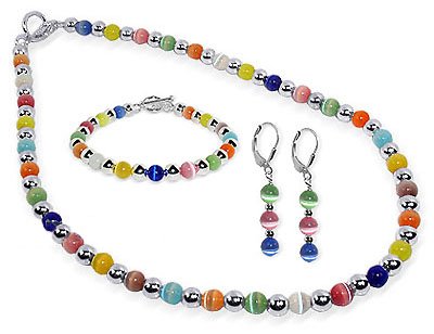 Features multi color Cat Eye beads and Sterling Silver accents making a fabulous creation. Beyond any doubt you will love it. Beads are approximately 5mm in diameter