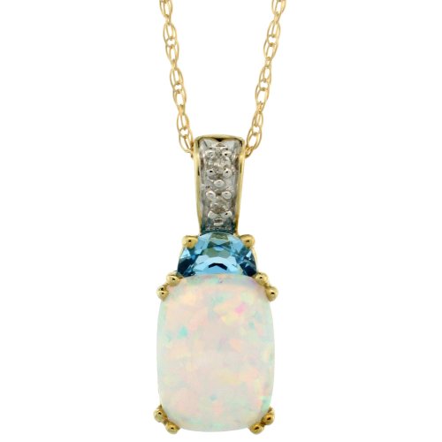 10k Gold 18 in. Thin Chain & 9/16 in. (15mm) tall Rectangular Pendant w/ Brilliant Cut Diamonds, Fancy Cut Blue Topaz & Created Opal Stones Review