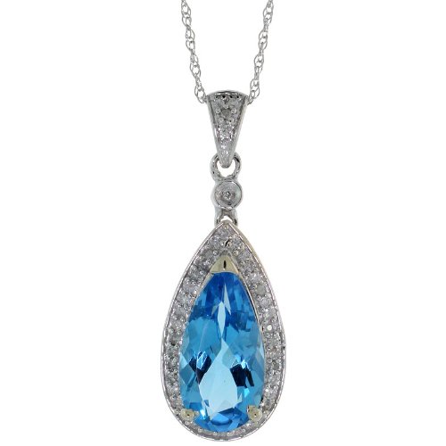 14k White Gold 18" Thin Chain & 1" (26mm) tall Teardrop Pendant, w/ Pear Cut (14x7mm) Blue Topaz Stone & 0.15 Carat Brilliant Cut Diamonds Review
