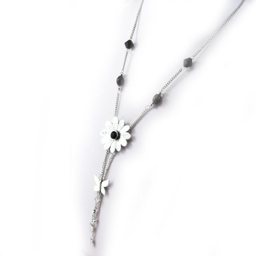[On SALE !] / 'french touch' of young french who offers us his achievements punctuated by the color and joy of living, little fantasies without taking themselves seriously! Necklace "Paquerettes" on metal silvery 60 cm (23. 62'') (with registration i love you a little, much. . . ), pattern 12x3. 5 cm (4. 72''x1. 38''). [Ref. G0580]