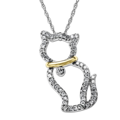 Sterling Silver and 14k Yellow-Gold Cat with Collar Diamond Pendant (.26cttw, I-J Color, I3 Clarity), 18" Review