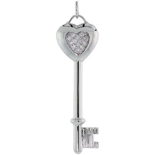 Sterling Silver Jeweled Key-To-My-Heart CZ Pendant, 2 3/16" (55mm) tall Review