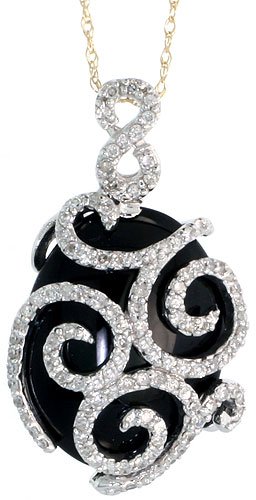 14k Gold 18 in. Thin Chain & 1 1/8 in. (28mm) tall White Gold Swirl Pendant, w/ Oval Cut Black Onyx Stone & 0.48 Carat Brilliant Cut Diamonds Review
