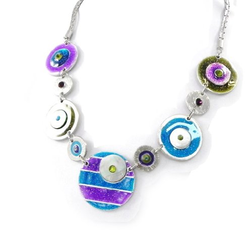 'french touch' young french who offers us his achievements punctuated by the color and joy of living, small fantasies without taking themselves seriously! Necklace "Bora Bora" silvery on metal, 50 cm (19. 69'') , width up to 3. 2 cm (1. 26''). [Ref. H9045]