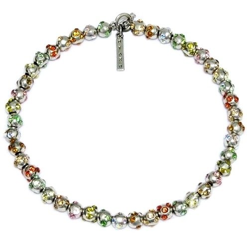 Timeless elegance in this casual and classic OTAZU necklace which is perfect to wear every day. Multicolor Swarovski crystals cover each Silver Tone pave ball and give them the sparkle that wearers adore. Azucar color mix includes Chrysolite, Jonquil, Crystal, Crystal Aurora Borealis, Light Colorado Topaz, Light Peach, Light Rose, Lime, Padparascha, Peridot, and Topaz.